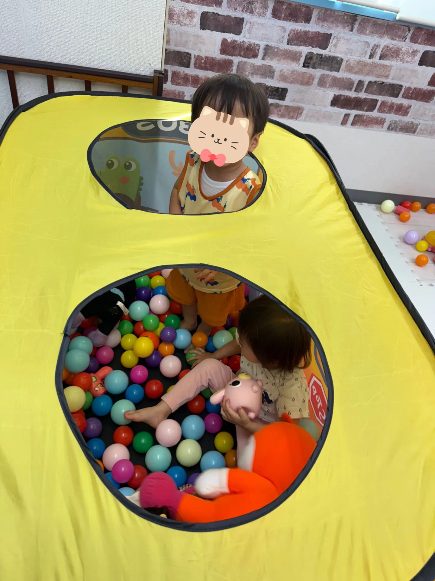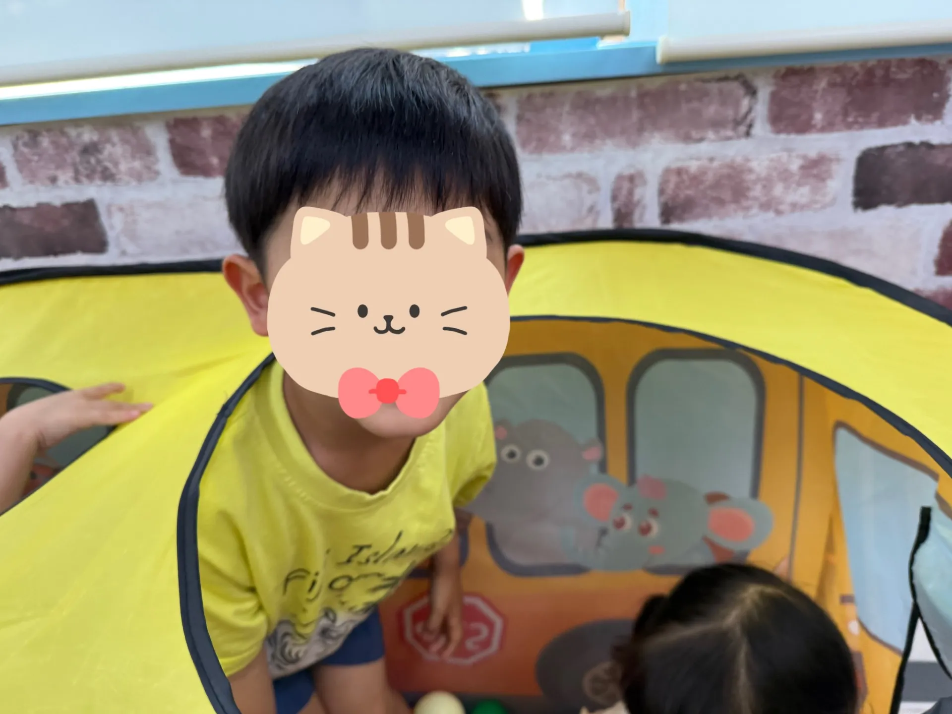 仲良しの5人組キッズとっても可愛かったです!👧👶👦3歳の女の子がリーダーとなって、「こっちに来てー!ここ入ってー!」と元気いっぱいに遊んでました。バス型のテントがお気に入りみたいで、テントの中で大騒ぎしてました🤣