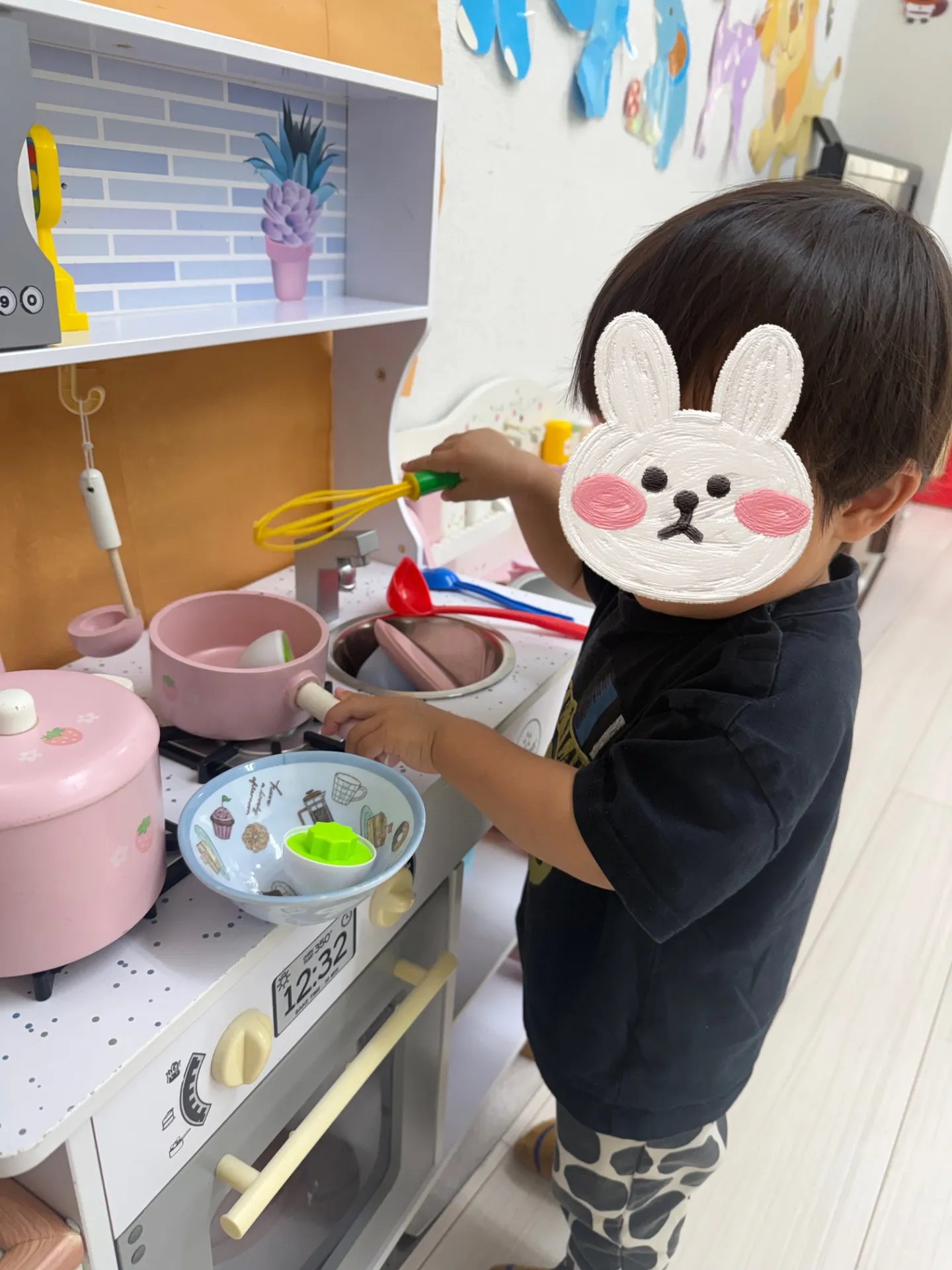 室内ではキッチンのおもちゃを使ってお料理ごっこ🍳